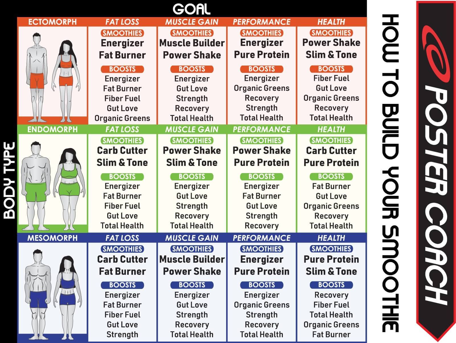 The Poster Coach system was established to help you, your staff, and the customer understand the way functional smoothies relate to an individual’s fitness, nutrition, and health goals. This system provides a logical approach to recommend smoothies and Power Boosts that will help your customers make educated choices on their own while lending credibility to the brand.